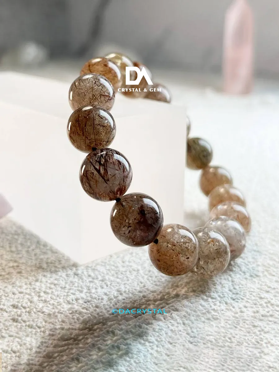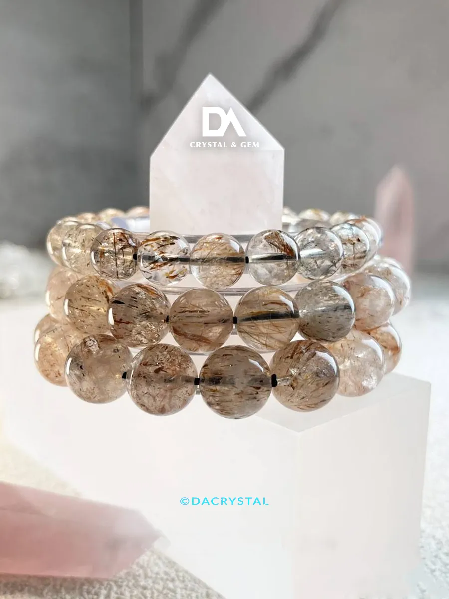 黑金超七融合金铜髮晶、黑髮晶与绿碧髮晶的能量,形成高频而稳重的磁场。它象征力量、丰盛与守护,能在接地与灵性提升之间取得完美平衡,帮助佩戴者稳住根基、唤醒内在潜能。